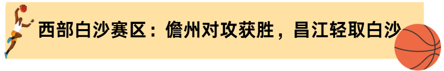 末节,白沙队虽努力追分,2号王浩、6号尹聪均有得分进账,但昌江队始终保持稳定输出,最终以79:53获胜。