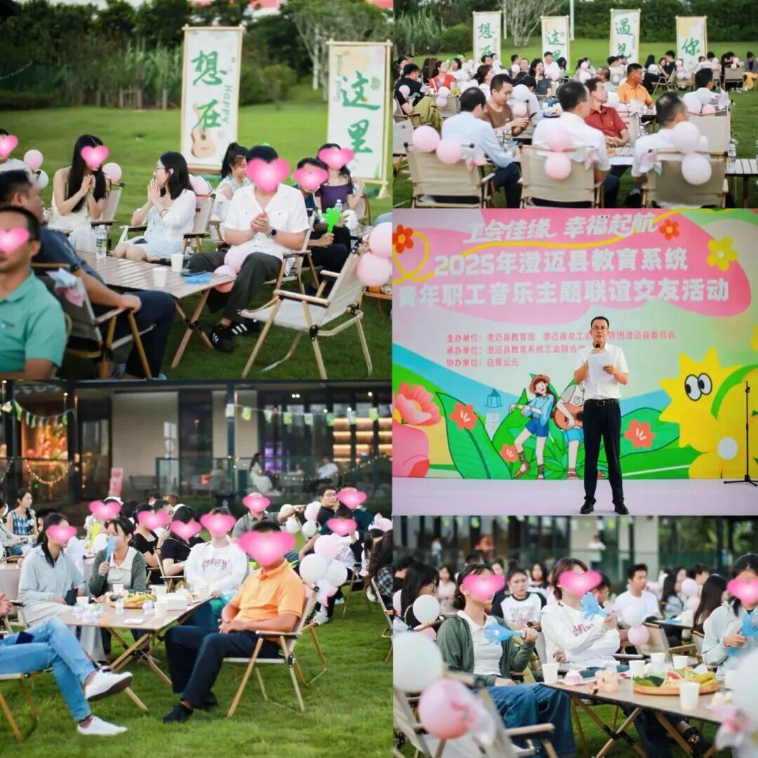2025年10月19日,由澄迈县总工会联合县教育局、共青团澄迈县委共同主办的“工会佳缘 幸福起航”2025年澄迈县教育系统青年职工联谊交友活动在澄迈县白鹭公元大草坪温馨举行。来自全县教育系统、政府各职能部门及国有企业的百余名优秀青年职工参与本次活动。最终共有9对青年职工现场牵手成功!
