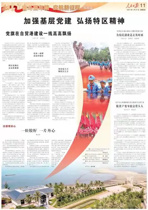百年党史波澜壮阔,百年初心历久弥新。海南是我国最大的经济特区,具有实施全面深化改革和试验高水平开放政策的独特优势。建设海南自由贸易港,是习近平总书记亲自谋划、亲自部署、亲自推动的重大国家战略,对完善和发展中国特色社会主义制度、构建人类命运共同体具有重要意义。海南深入学习贯彻习近平新时代中国特色社会主义思想,大力弘扬艰苦卓绝、孤岛奋战、二十三年红旗不倒的琼崖革命精神和敢闯敢试、敢为人先、埋头苦干的特区精神,立足新发展阶段,贯彻新发展理念,融入新发展格局,推动中国特色自由贸易港建设顺利开局、蓬勃展开。